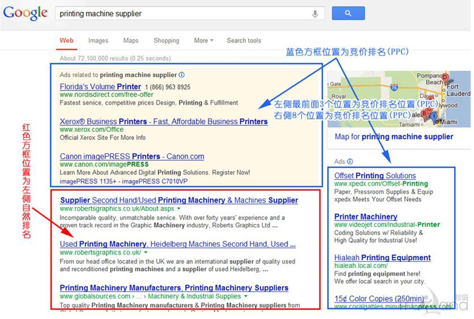 Google左側排名是按網頁(或網站)與所搜索的關鍵詞匹配度來決定的,另外Google排名也考慮其他許多因素,最終的排名位次是考慮到許多參數綜合計算的結果。據統計有超過96%的搜索者使用Google (或者Google提供的數據)檢索他們所需要的產品信息。