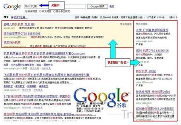 4. 性價比高:Google的搜索引擎被眾多門戶網站使用,在Google左側排名廣告也就意味著在使用Google搜索引擎的門戶網站上做廣告!