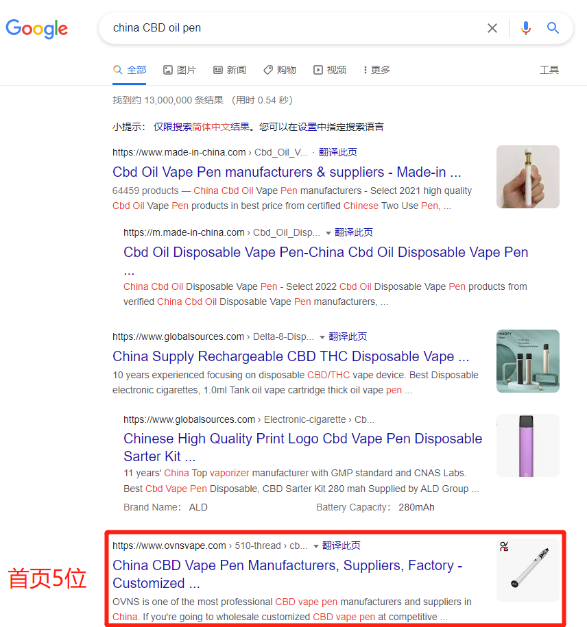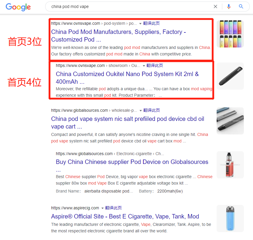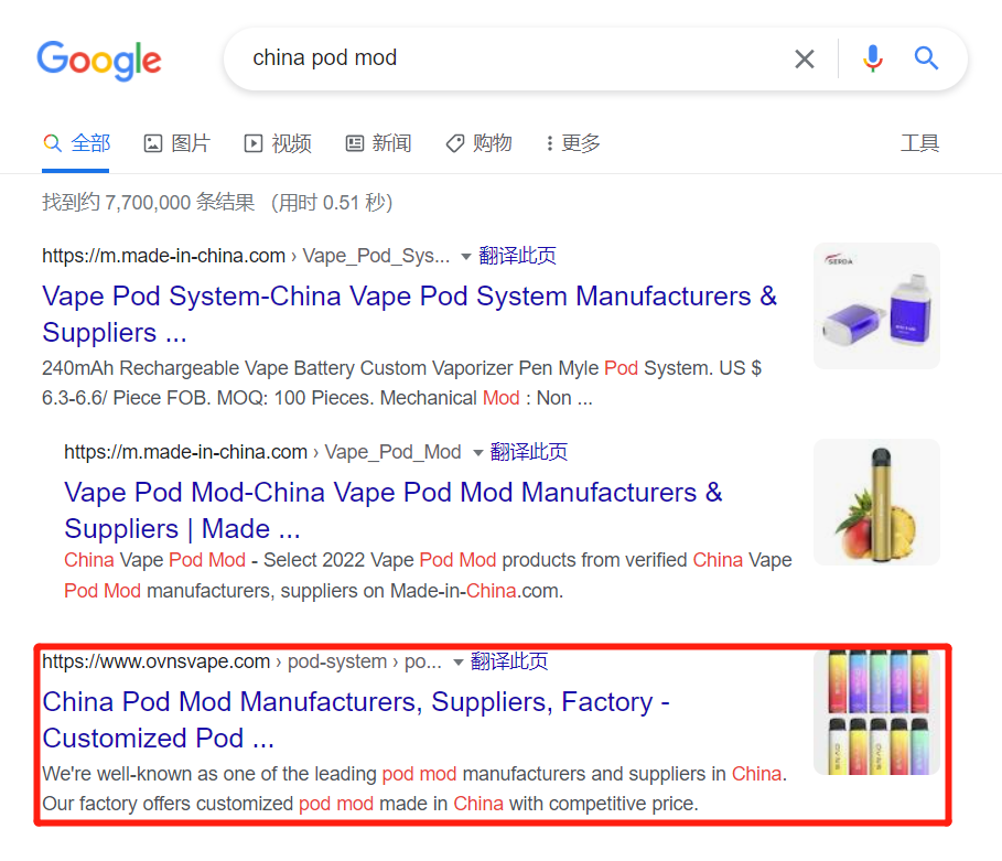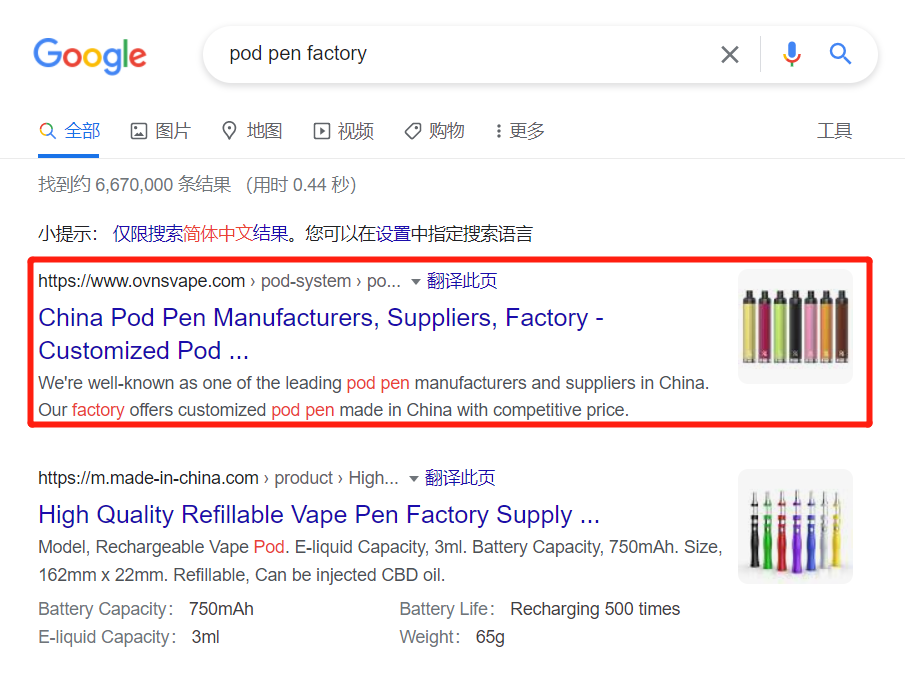 外貿快車針對 電子煙 SEO優化具備經驗,就以下的客戶案例,網站截圖,Google搜索截圖作為真實數據。